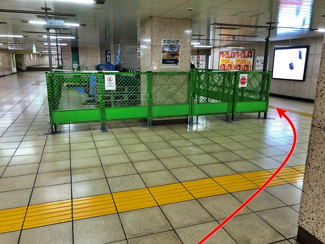 「エレベーター専用改札」を左手に見ながら、さらに先へ。