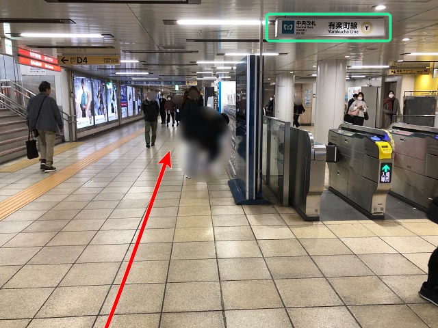 有楽町線・有楽町駅の4つある改札のうち、三田線・日比谷駅に最も距離があるのが、こちらの改札です。
