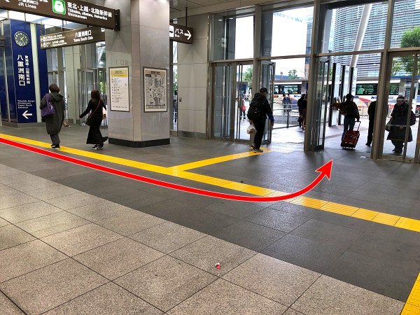 「八重洲南口」の案内板を過ぎたら、扉にむかい、