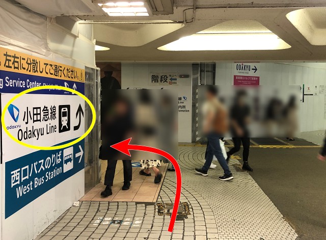 小田急線「西口地下改札」からほど近い地上方面階段が、JR「西改札」から行くにも無難な出口です。