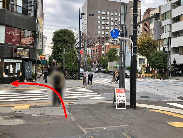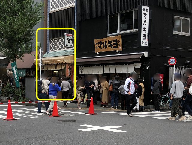 「出口2」は、甘酒横丁の交差点にあります。