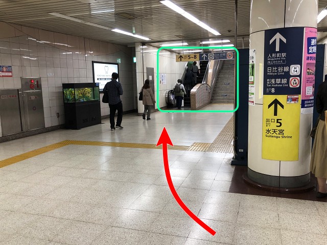 「出口5~8」とあるエスカレーターか階段で上へ。