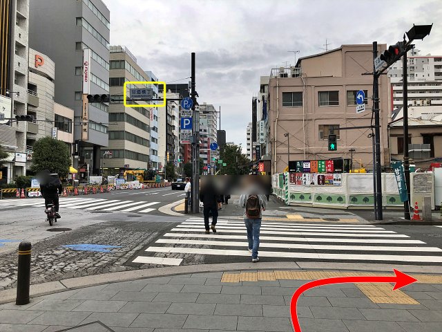 「出口2」から外に出たら、そのまま横断歩道を渡って、右に。