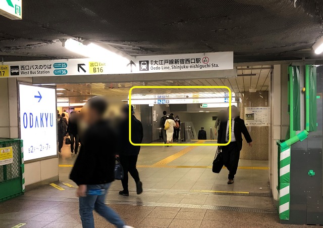大江戸線・新宿西口駅「JR新宿駅方面改札」前に到着です。お疲れさまでした。