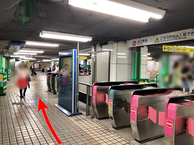 地下フロアに着いたら、階段の後方右に進み、丸の内線「西改札」前を過ぎて、