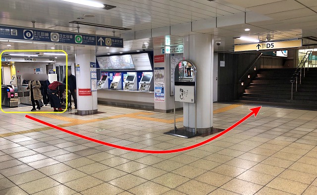 改札から進み、左にある「D5」の階段を上って、