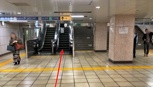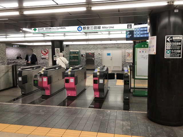 都営三田線・日比谷駅「東京国際フォーラム方面改札」に到着です。