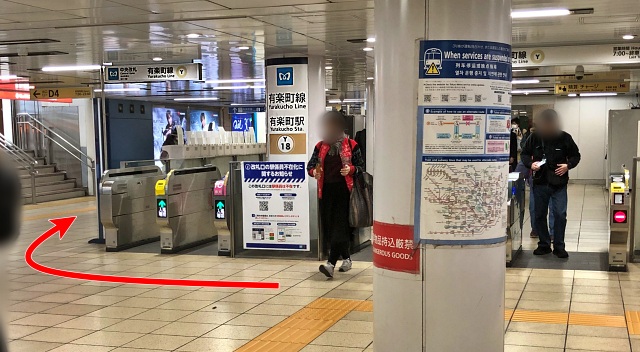 有楽町駅の「中央改札」は、『東京国際フォーラム』へ直結する出口に近いのですが、三田線・日比谷駅までは若干距離があります。