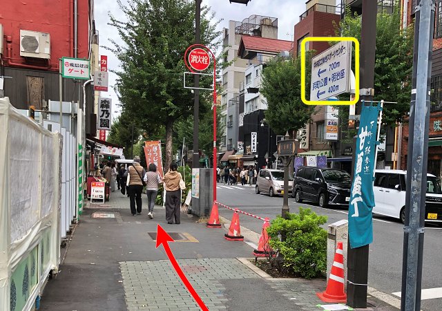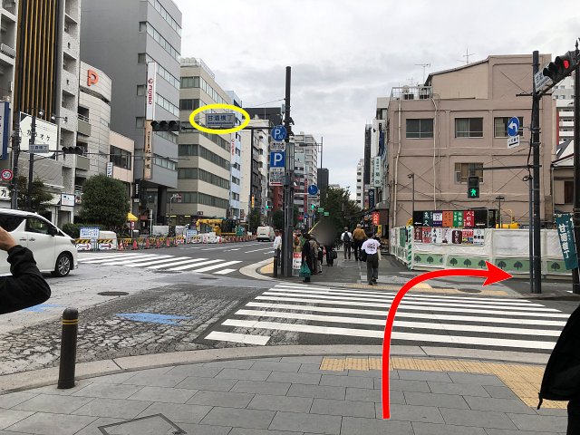 甘酒横丁の交差点まで進みます。