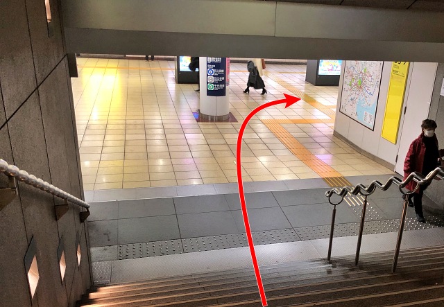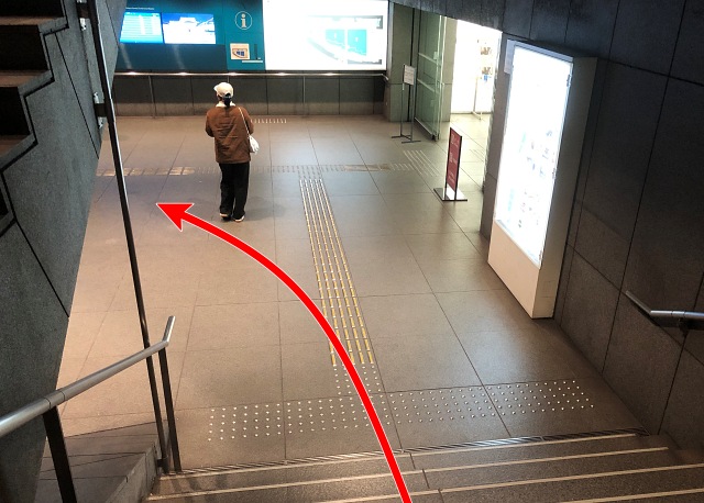 出口「D5」は「D6」同様、7時~23時が利用時間なので、それ以外は、『京橋口改札』から右に行き、外に出てすぐにある「D7」の階段を利用します。