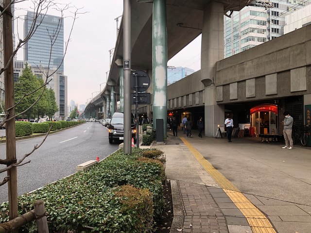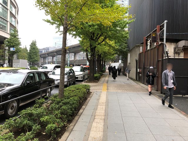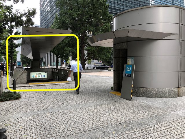 しばらく行くと、歩道の左側に地下出入口が見えてきます。