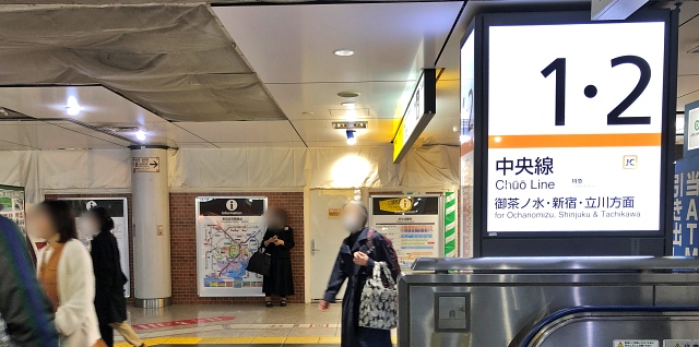 今回は、中央線ホームにあるエスカレーター等を使うと、1階のどこに着くのかについてのまとめを、2回に分けて掲載します。