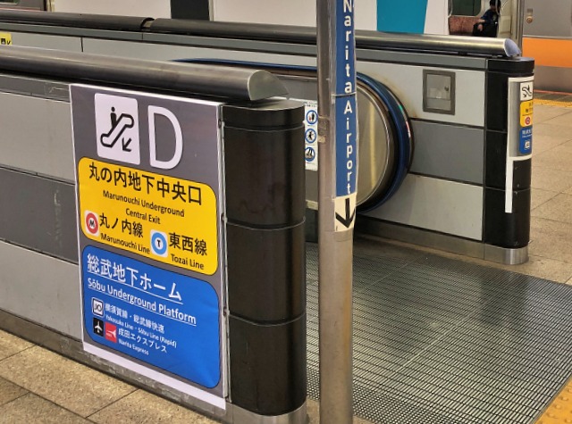 「D・エスカレーター」は、「C」と同じ5号車停車付近にあって下り専用です。