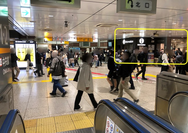 ホームから1階に下りる時のエスカレーターを選べば、1階では、より地下階段に近い場所に到着できます。