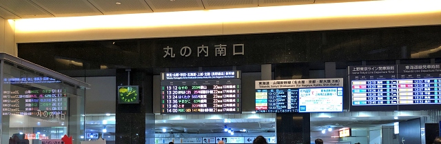 「丸の内南口」改札は、右下。南通路を通って、南のりかえ口にむかうのがベターです。