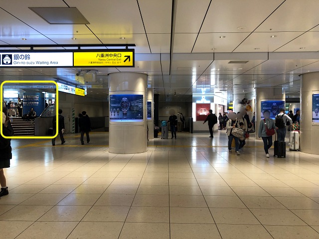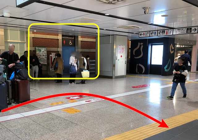 改札を抜けたら、そのまま進んで行きます。通路は広いので、真ん中より左側を進んで行きます。