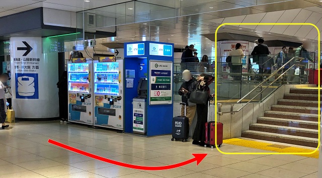 『新幹線北のりかえ口』とある階段前を通り過ぎて進み、