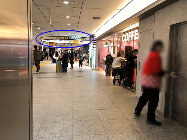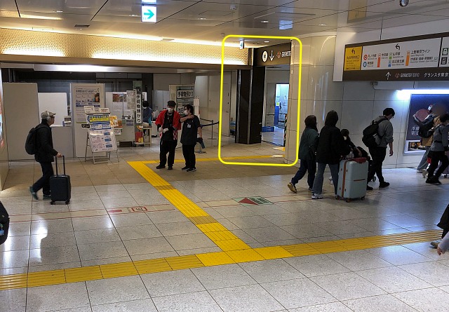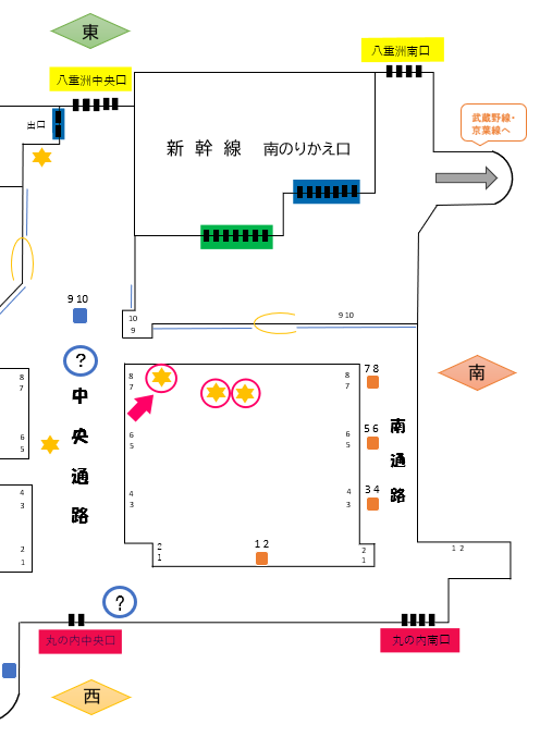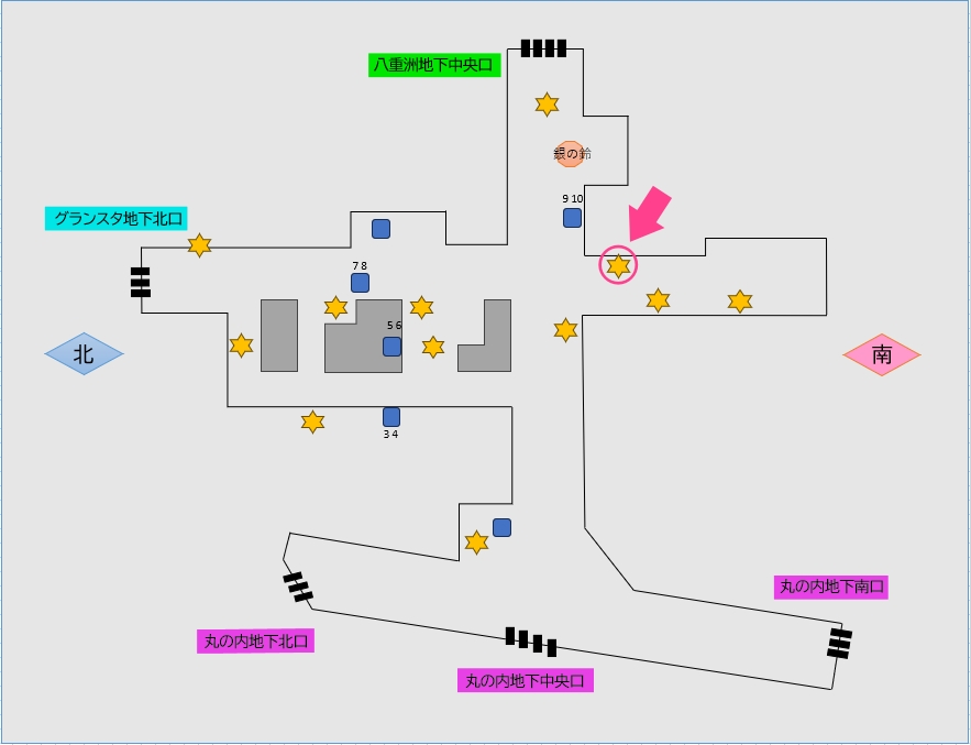 「地下中央通路」近く、八重洲側寄りが到着地点。