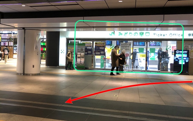 『みどりの窓口』の正面入口あたりで、左ななめ方向に。