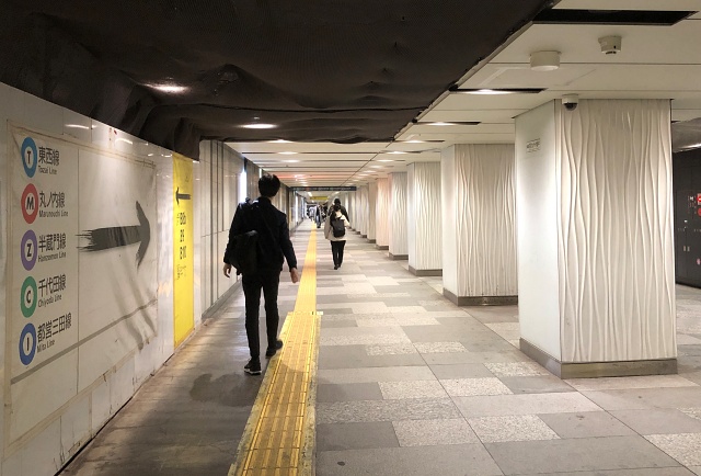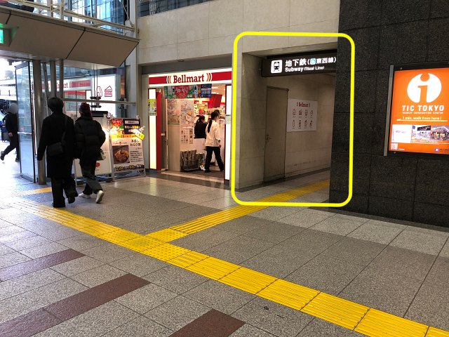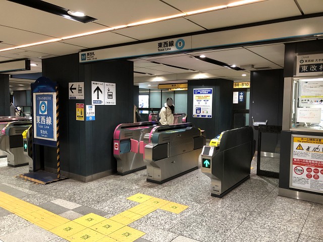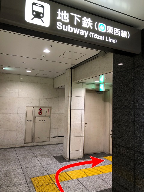 東西線の改札前につづく通路までたどり着き、曲がる方向さえ間違わなければ、迷うことなく東西線まで行けます。