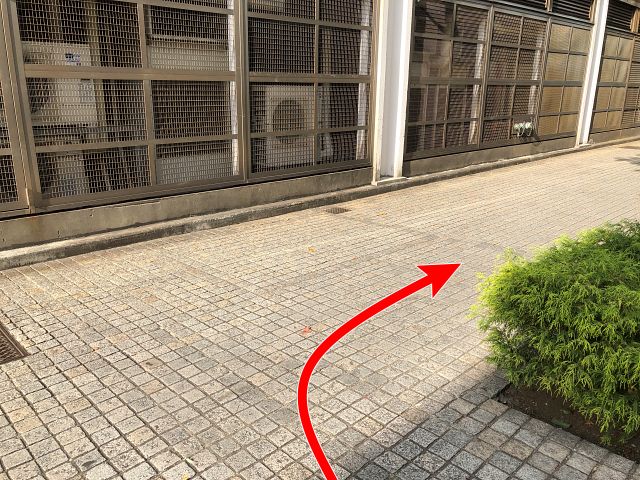 ビルの外階段の手前を右に行き、