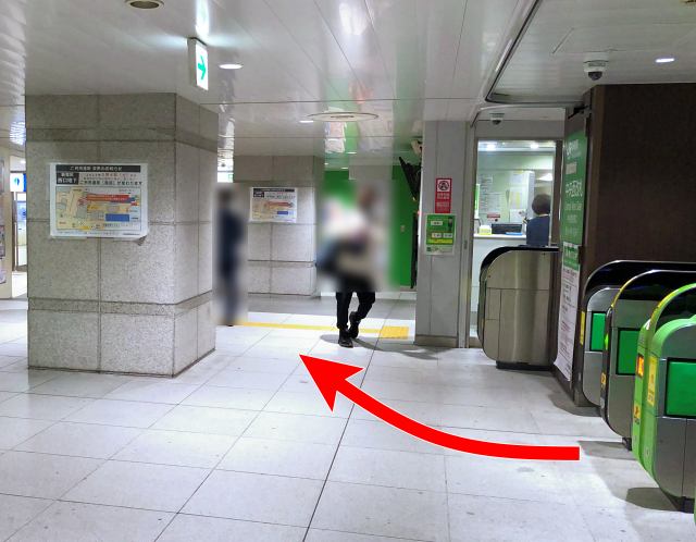 改札から、右ななめ方向へ。