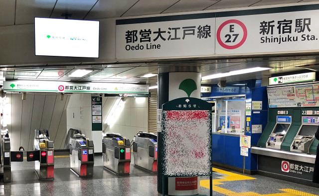 大江戸線・新宿駅「JR新宿駅方面改札」に到着です。お疲れ様でした。